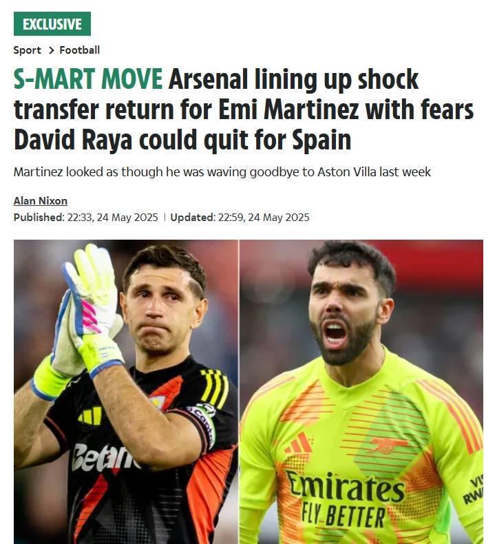 认真的吗?太阳报:阿森纳希望签回大马丁,皇马马竞关注拉亚