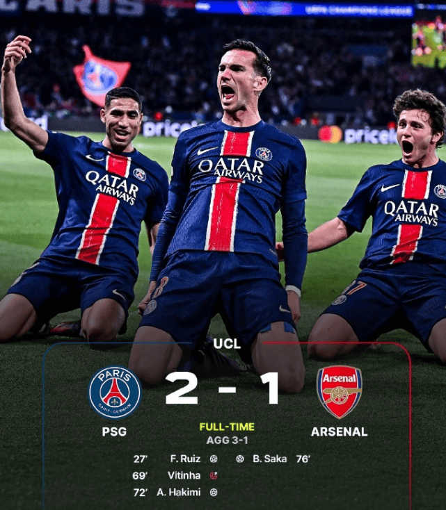 欧冠半决赛次回合巴黎圣日耳曼主场2比1力挫阿森纳,球队两回合3比1双杀对手晋级决赛,将和国米争夺欧冠奖杯,这也是巴黎距离欧冠奖杯最近的一次,球队有点势在必得的感觉,但是蓝黑军团也曾血性登顶欧冠,本赛季同样有笑到最后的可能性。阿森纳此役也是希望逆转取胜对手晋级的,遗憾的是进攻端火力不足,防守端丢两球,彻底葬送了晋级的可能,赛后球队四大皆空,所幸的是还有英超前4的排名,可以获得下赛季的欧冠资格。
